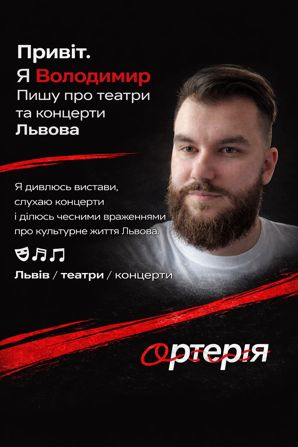 Все почалося з театру. За цей час я побував на сотнях вистав, пройшовся десятками жанрів і напрямків, відвідав усі професійні театри Львова і кілька гастрольних історій. Бачив неймовірно сильні роботи, бачив відверто слабкі, але майже завжди виходив із зали з думками. Іноді з захопленням, іноді з питаннями, іноді з бажанням мовчки подивитися в стіну.